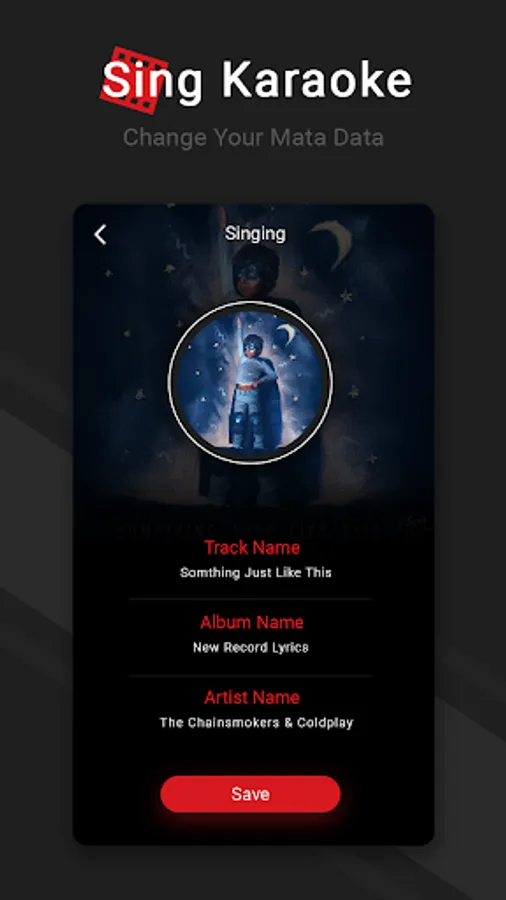 ● Change MetaData(Track name, Album name and Track Thumbnail). Save Your Recording with your selected Photo and Name.