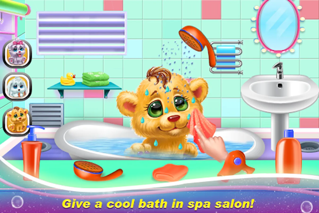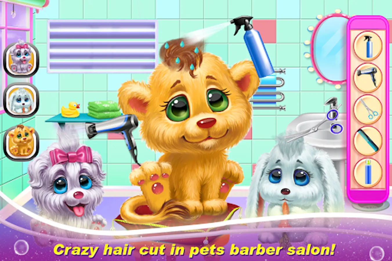 - Baby pets kitty, puppy, jungle lion animals grooming care salon