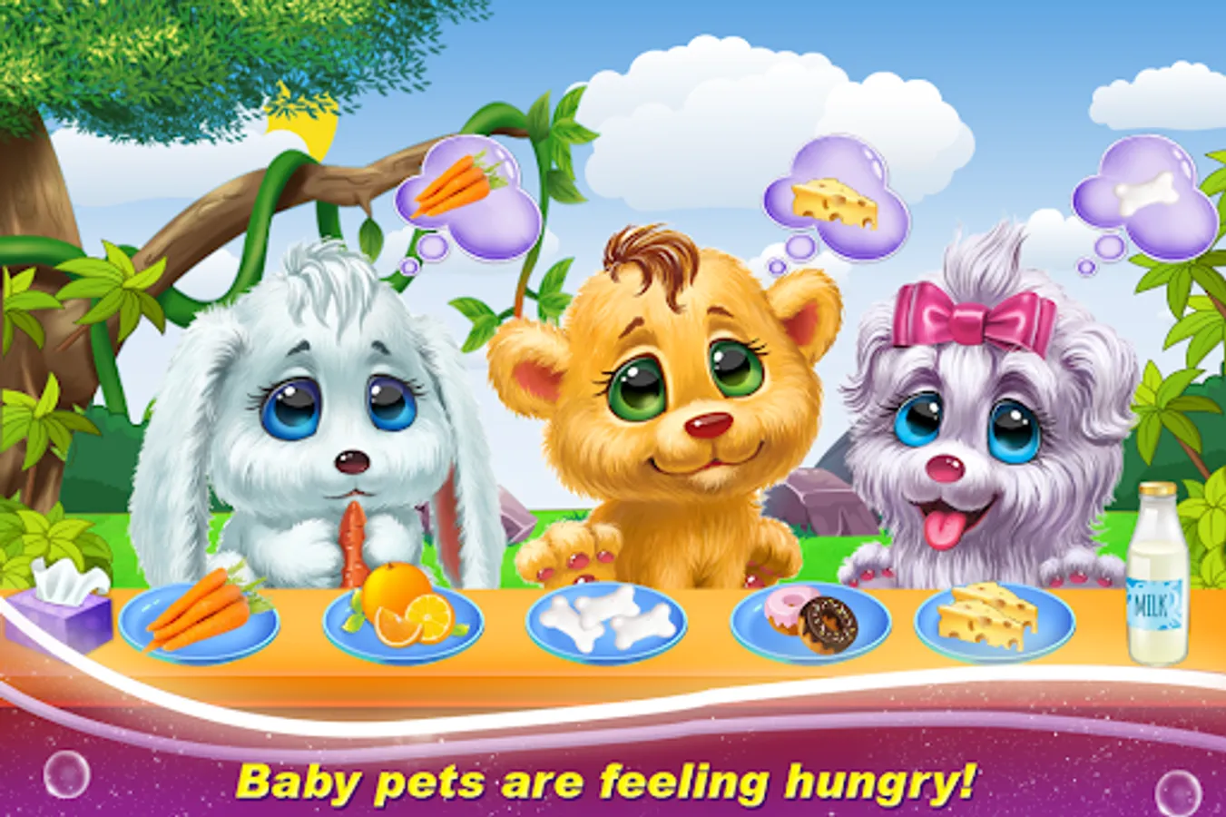 Baby Animals Pet Vet Care veterinary Doctor clinic for cute baby animal pets babysitting and daycare nursery. Fluffy puppy animals need health and fitness. Fluffy Chic pets is perfect educational and fun treatment game for adorable lovely baby animals. Puppy Dog, Fluffy rabbit and fluffy baby lion are waiting for your affection and attention. Animals are facing injuries and needs emergency treatment and they need regular medical checkup as well. There are baby nursery pets room in daycare centre for animals, in doctor office clinic room you can check animals fever, stethoscope for heat beat, plucker, syrup medicine and eye dropper for infection. There are animals pets haircut hairdresser salon room where you can apply hairs shower, hair dryer, barber scissor, comb and baby hairs gel. Give a cool bath spa in bathtub with shampoo, towel, shower, dryer and baby oil lotion. Feed baby pets with carrots, oranges, bones, eggs, cupcakes, cheese and baby animals milk. In Dress Up room, dress up the baby pets with glasses, caps, pets belts, baby pets bow and endless stylish accessories to look gorgeous.