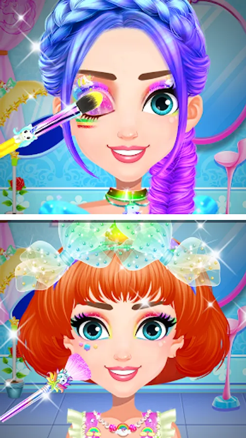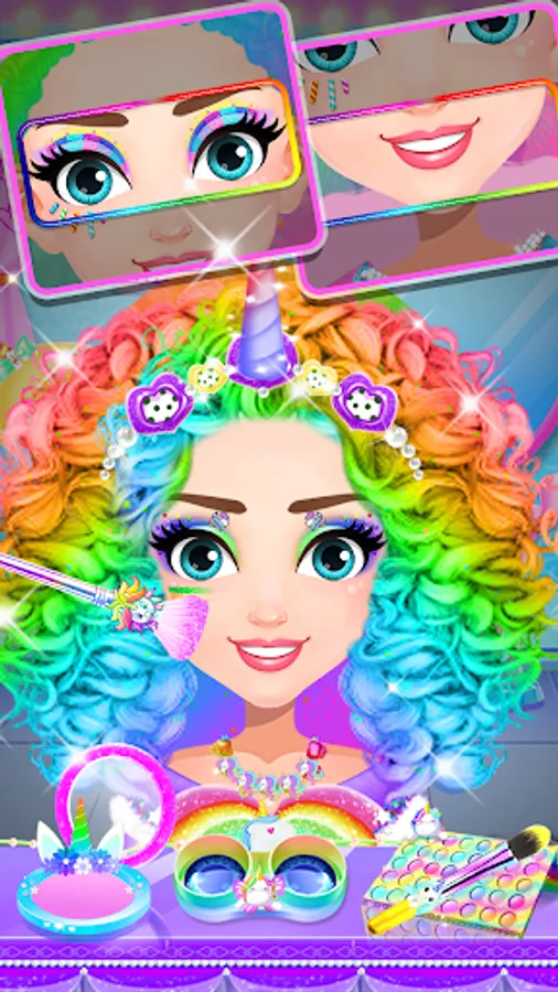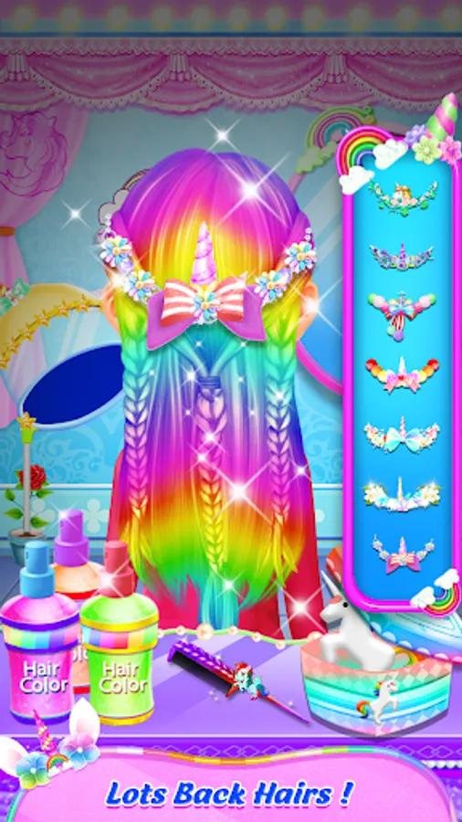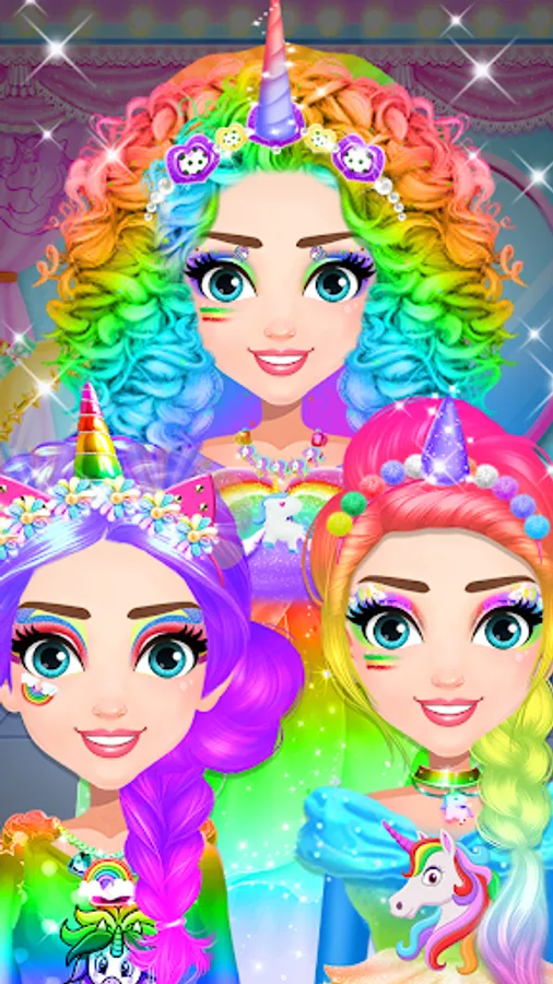 Genius Unicorn Girls Hair Cut Beauty Braid Salon💇easy game for schoolers will let your kids to create trendy stylish dream hairs styles you can imagine. Let's create cute style and repeat. Choose your favorite unicorn girl and do creative makeups, face spa, hair color, fashion braids, dressing up and nail art with manicure and pedicure adventures. Be fashion tycoon and Apply straightener, scissor, shampoo, comb, curler, hair wax on messy hairs to give shapes looks like a celebrity. Cute Little unicorn girls want to look like superstar model in beauty contest.💄