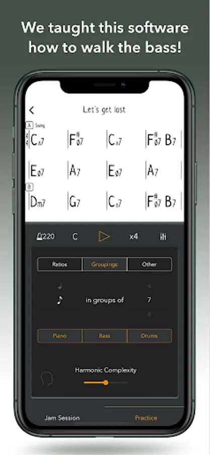 Genius Jamtracks is the only playalong with an AI-powered jazz trio that mirrors the unpredictability of live musicians, giving you a real band feel while practicing.