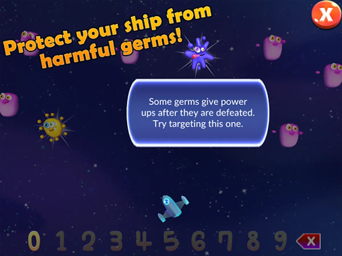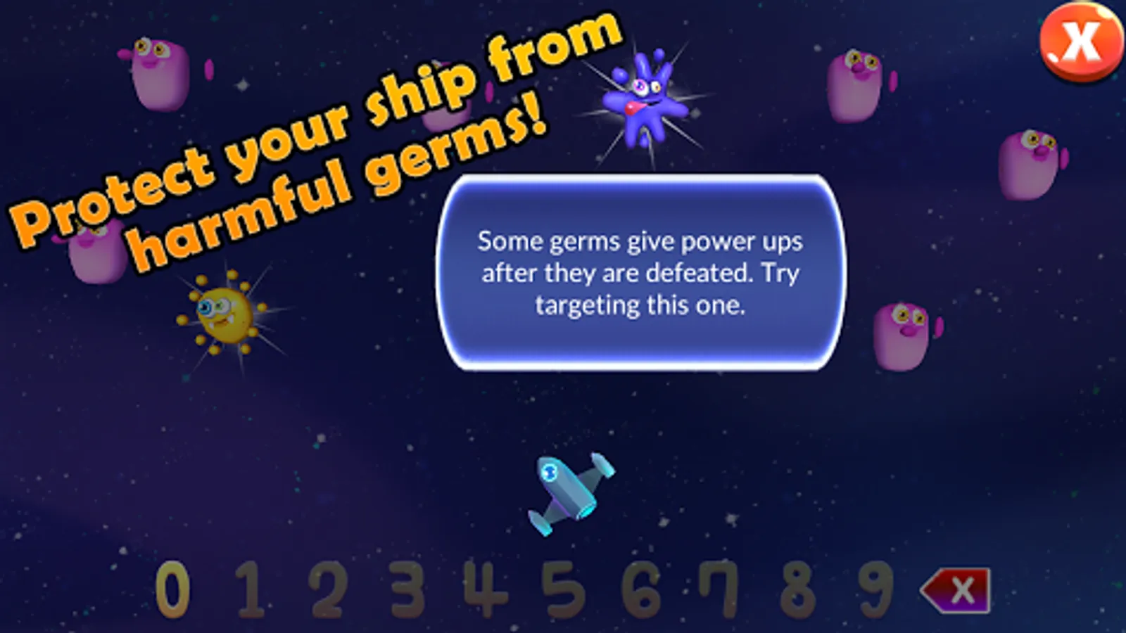 Practice your math skills with Mad Minute! Zap space germs from your spaceship with each problem you solve. Certain germs can zap all other germs, and some make the screen freeze, which causes time and movement to stop. Improve your math skills while flying through space, all in a Mad Minute!