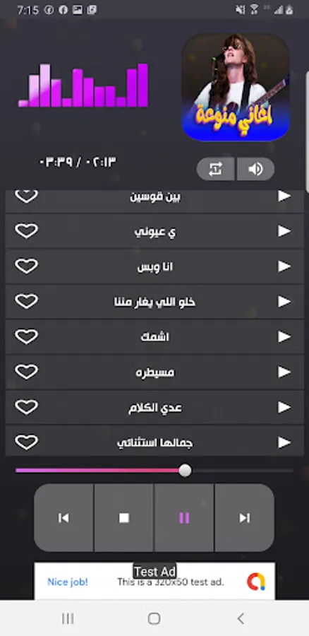 The songs are characterized by high sound quality and the ability to hear them in the background with the automatic change of music and songs.