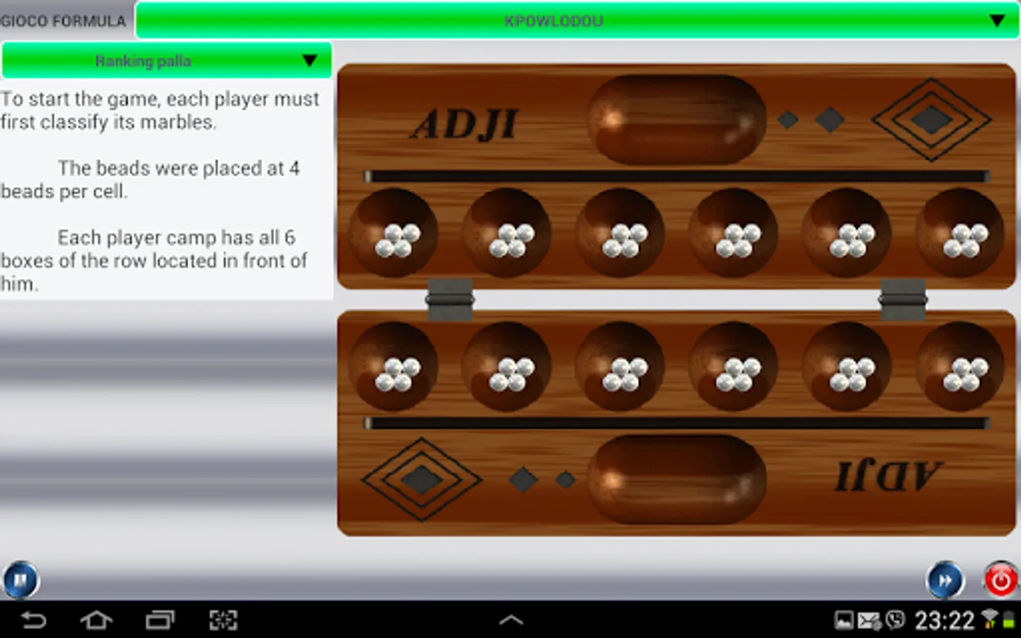 ADJI finds its origin in Antiquity. This game is played on all the African continent.