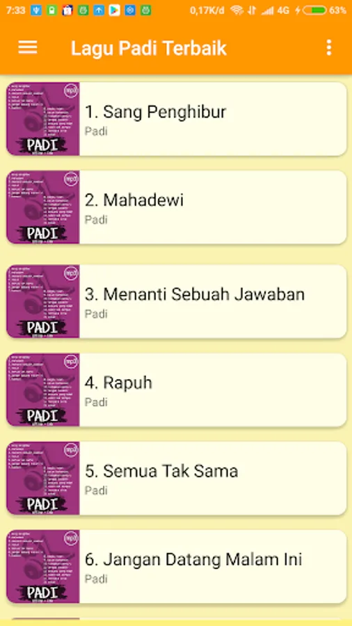 This is a song player application that contains popular rice songs in the country. The band, which was initiated by Piyu, has been in the Indonesian music scene for a long time. His relaxed and poetic songs are characteristic of Padi which makes him one of the most respected bands. Popular songs from padi are pal, mahadewi, so beautiful, all not the same, harmony and much more.