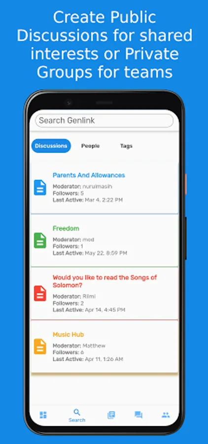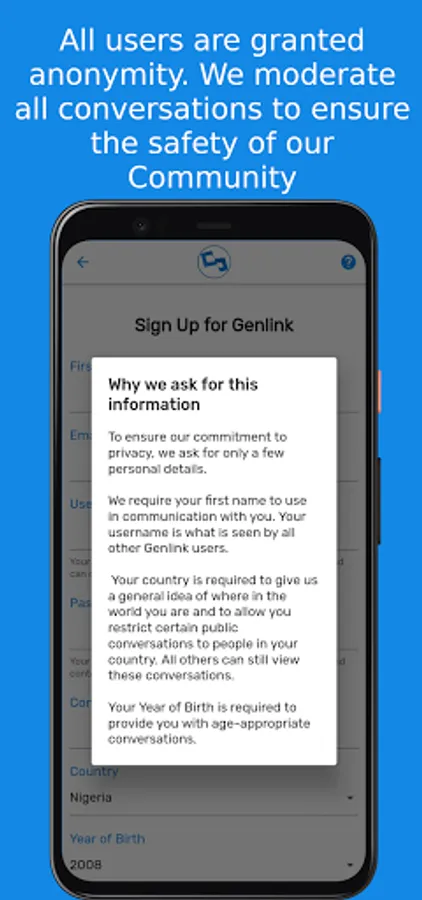 Genlink allows you to create private invite-only groups that encourage candid conversations with your teams. As everyone is anonymous, it's the perfect solution for an honest team evaluation or your silent youth group concerned with public opinion.