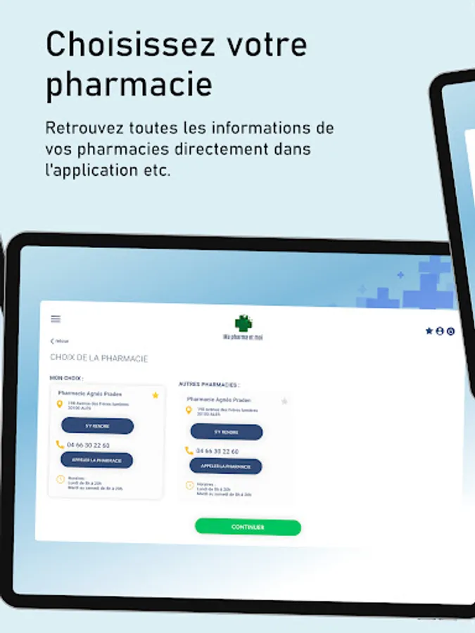 Choose your pharmacy. Find all the information of your pharmacies directly in the application.
