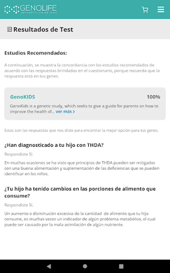 Each study comes with an interpretation of results from your application and you can request your report in PDF at an extra cost.