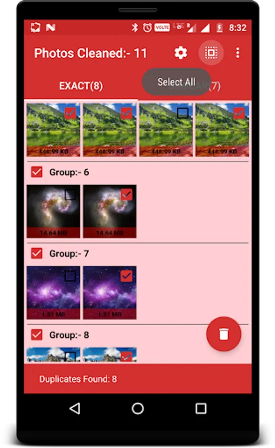 - Delete all similar photos which are nearly identical while keeping one copy of your photo
