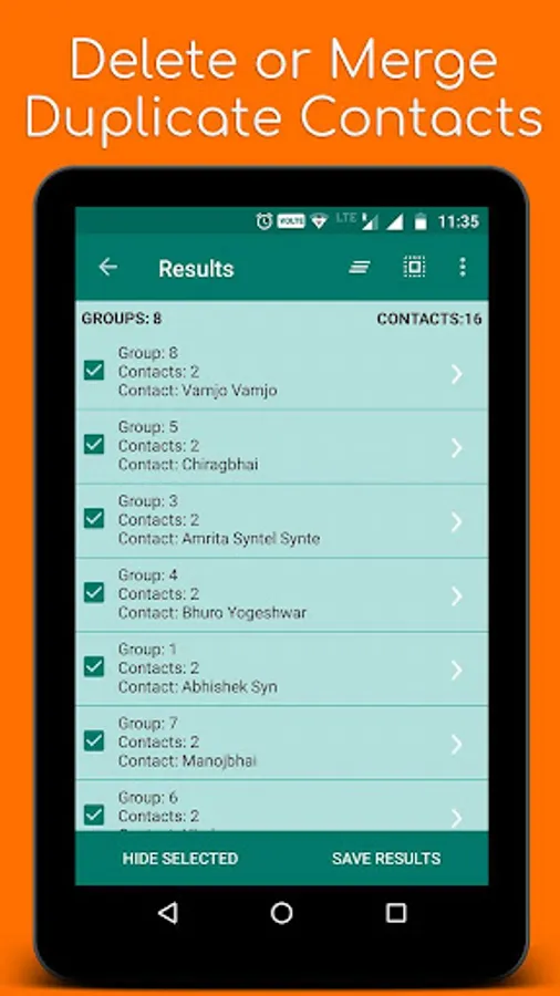 Identify, scan, merge and delete or remove duplicate contacts automatically.