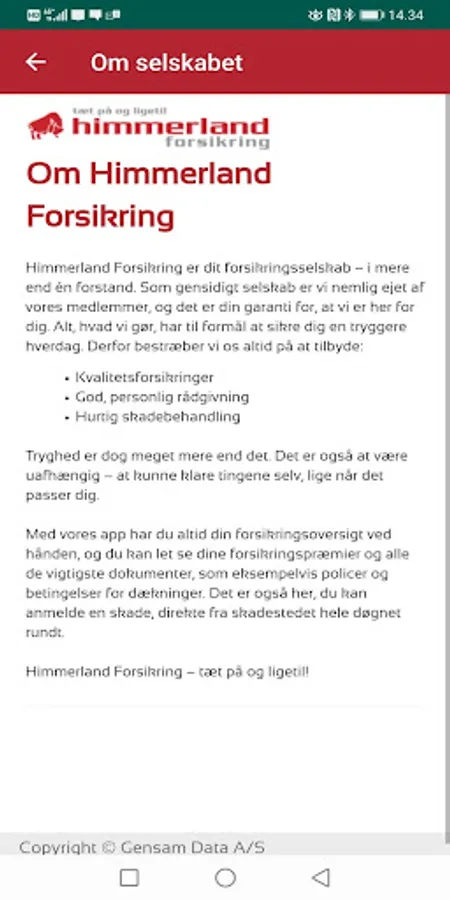 With our app you always have the necessary information at hand and we make it even easier for you to be a customer of Himmerland Forsikring - we are close and straightforward!