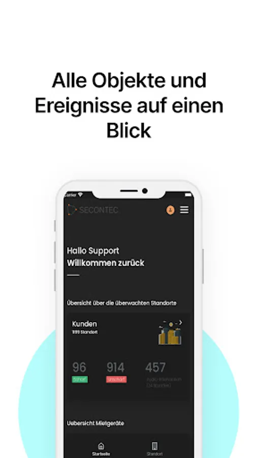 With the Secontec App, you have a good view over a project or an object. Auf einem Blick haben Sie die Alarminterventionen der letzten 24h sowie die dazugehörigen Ereignisprotokolle. Sie behalten die full Kontrolle – Report Sie abweichende Zeiten oder eine Veränderung der Ansprechpartner direkt über die App an, die Änderungen were fully automatic in unserem Video Operation Center verarbeitet. Since all Datenschutzrechtlichen Gesichtspunkte ein contenten – Haben Sie die Möglichkeit directly per Live view auf die Kameras zuzugreifen.