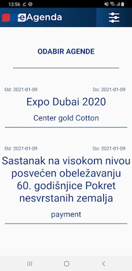 The eAgenda application is used to create and review agendas regarding the organization and realization of official events that are important for the Republic of Serbia.