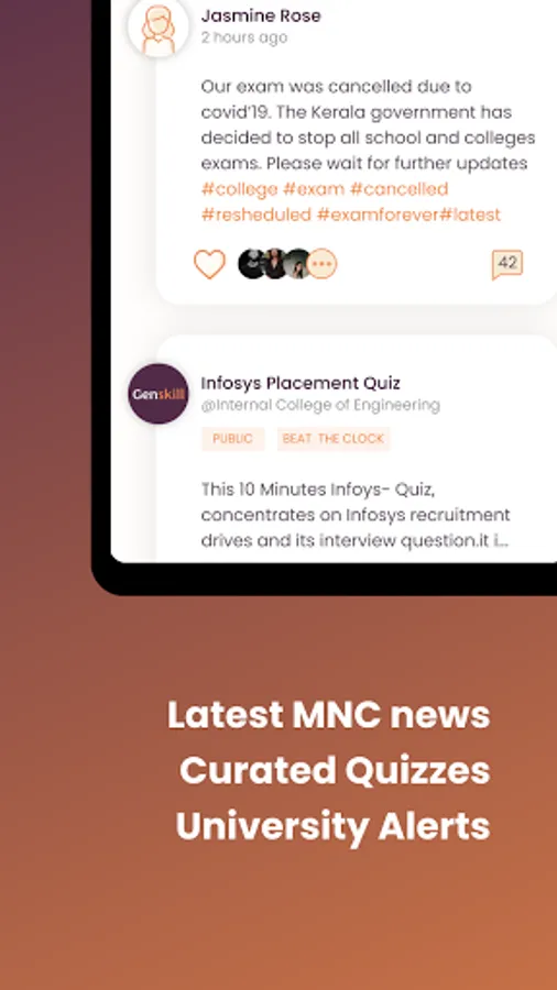 • Get updates from the placement department of institutions that students are affiliated to if the department has signed up to use the platform