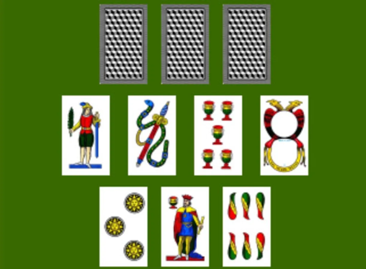 It is the simple game of Scopa with Neapolitan cards. Simple, so to speak, because as simple as it may seem to a human, it's not that simple for a computer. Anyway ... have fun!
