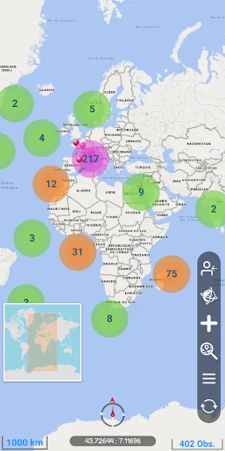 The search is intuitive with seasonality/dates and the possibility to select several types of observations.