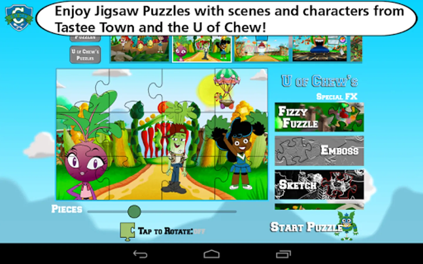 – Enjoy Jigsaw Puzzles with scenes from the app and bonus images you create in the Art Department. Children can control difficulty, set the number of pieces and apply special effects.