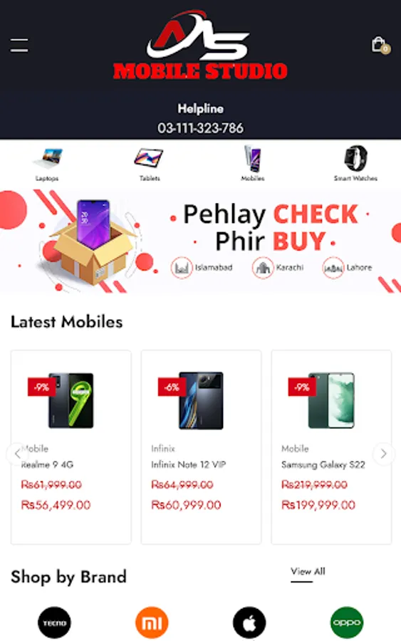Mobile Studio app is a shopping app that allows users to browse and purchase a wide range of mobile devices, laptops, tablets, and accessories from their smartphones or tablets. The app features a user-friendly interface that allows users to easily browse products by category, brand, or price range. Users can also search for specific products using keywords. The app also allows users to view detailed product information, including specifications and customer reviews. Users can add items to their cart and proceed to checkout, where they can select their preferred shipping and payment options. The app also allows users to track their orders, and receive notifications on the status of their delivery.