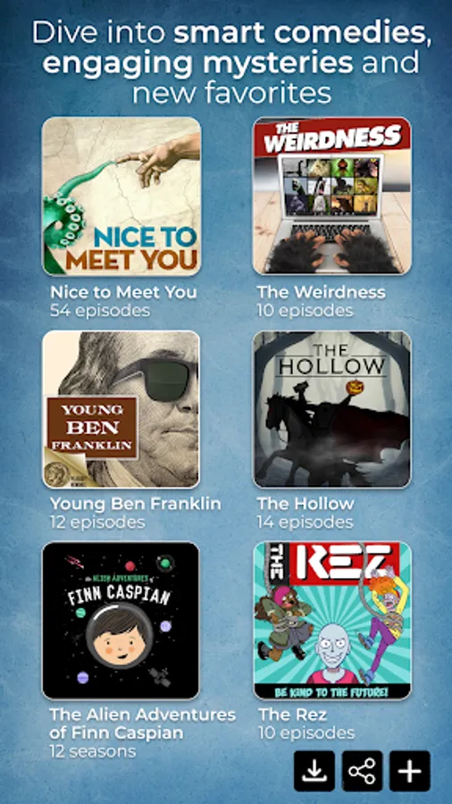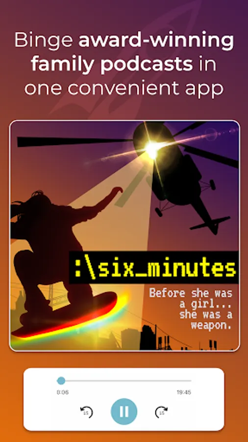 The biggest all-ages podcast adventures, mysteries and more, all in one convenient app. Binge hundreds of hours of smart, fun and safe audio entertainment for teens, tweens and the whole family, including: