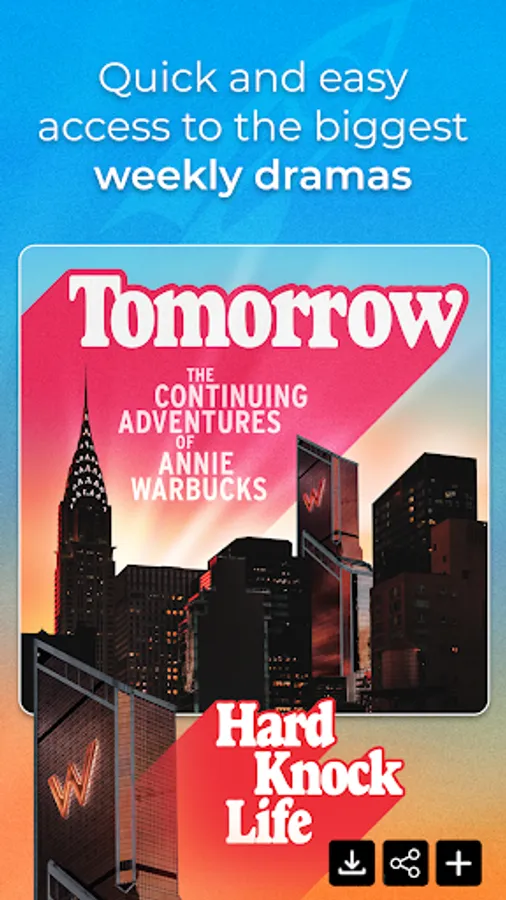 - "Tomorrow", the continuing adventures of Orphan Annie, Oliver Warbucks and Agatha Hannigan