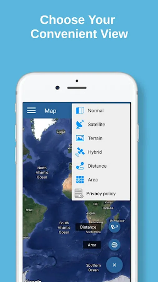 - Map, Normal, Satellite, Terrain, and Hybrid modes