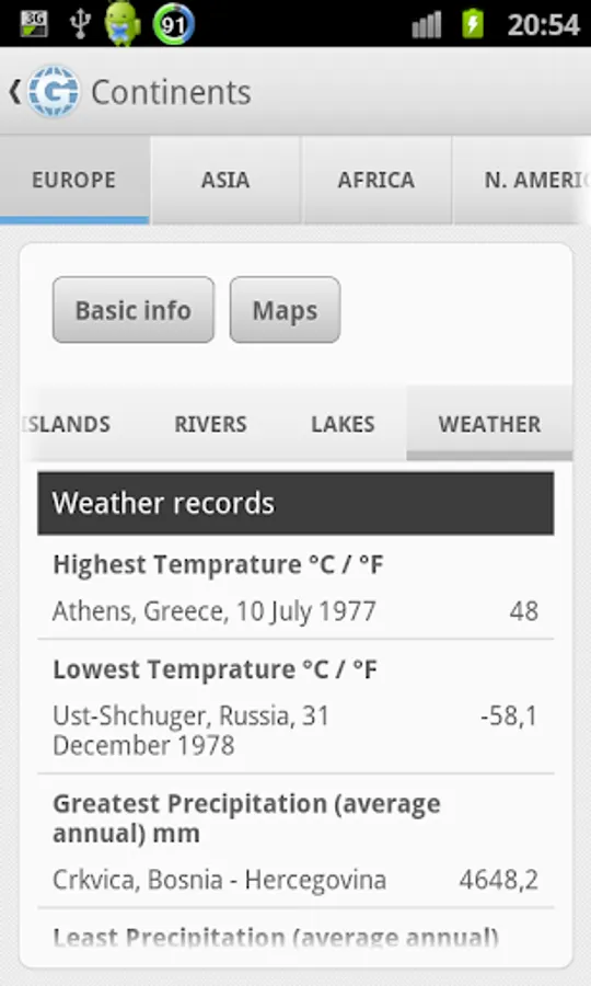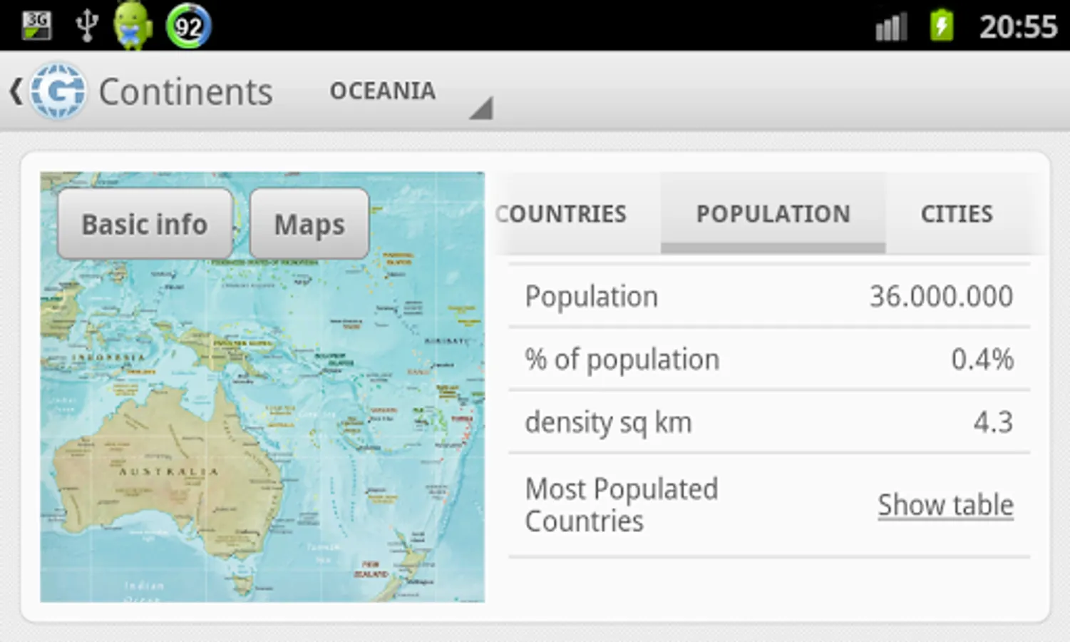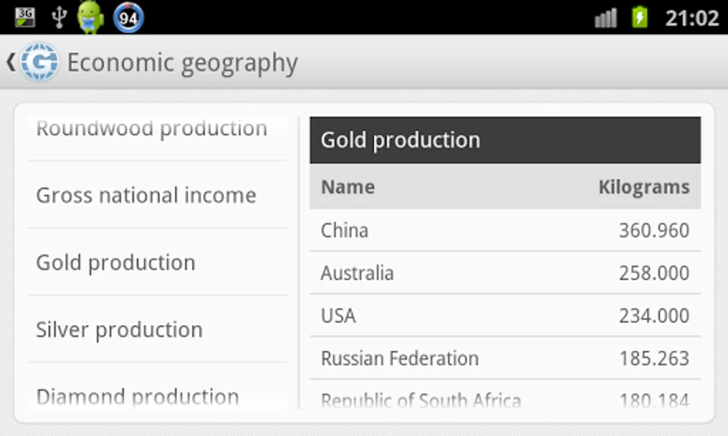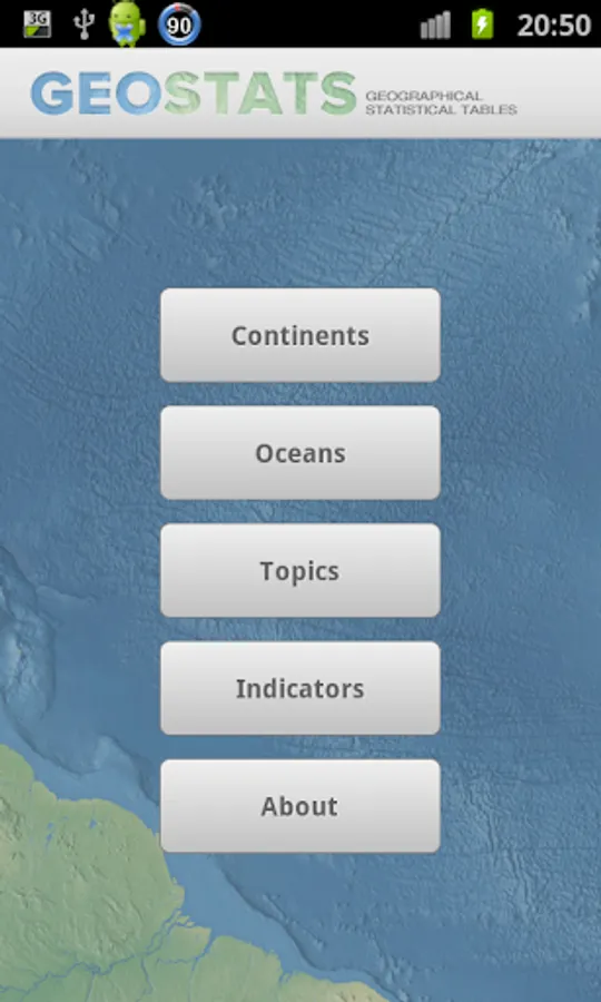 The Geo Stats (Geographical statistical tables) is an app that shows geographical data in tabular form. Data are arranged at the continents, oceans, geographical branches and indicators levels.