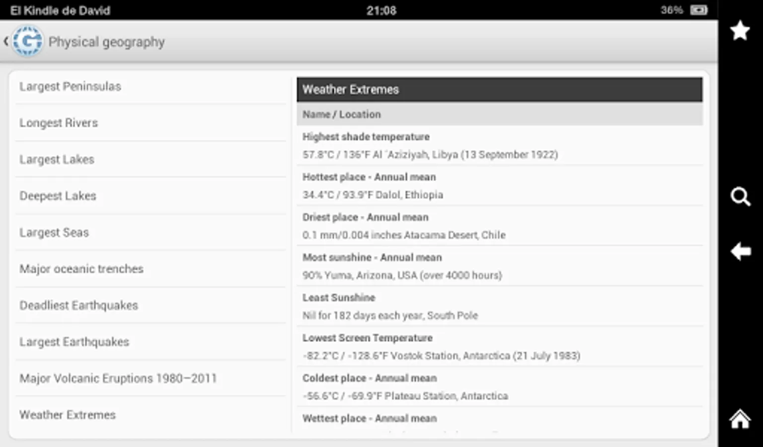 You can find records such as the largest lakes in Africa, the longest rivers in South America, the most populated countries in the Eurozone, the largest bays or seas of the oceans, the world's largest meat or milk producers or largest gold and silver producers.