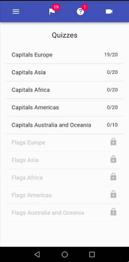Complete quizzes, get points and open new ones. The app contains hints that allow you to disable 2 incorrect options.