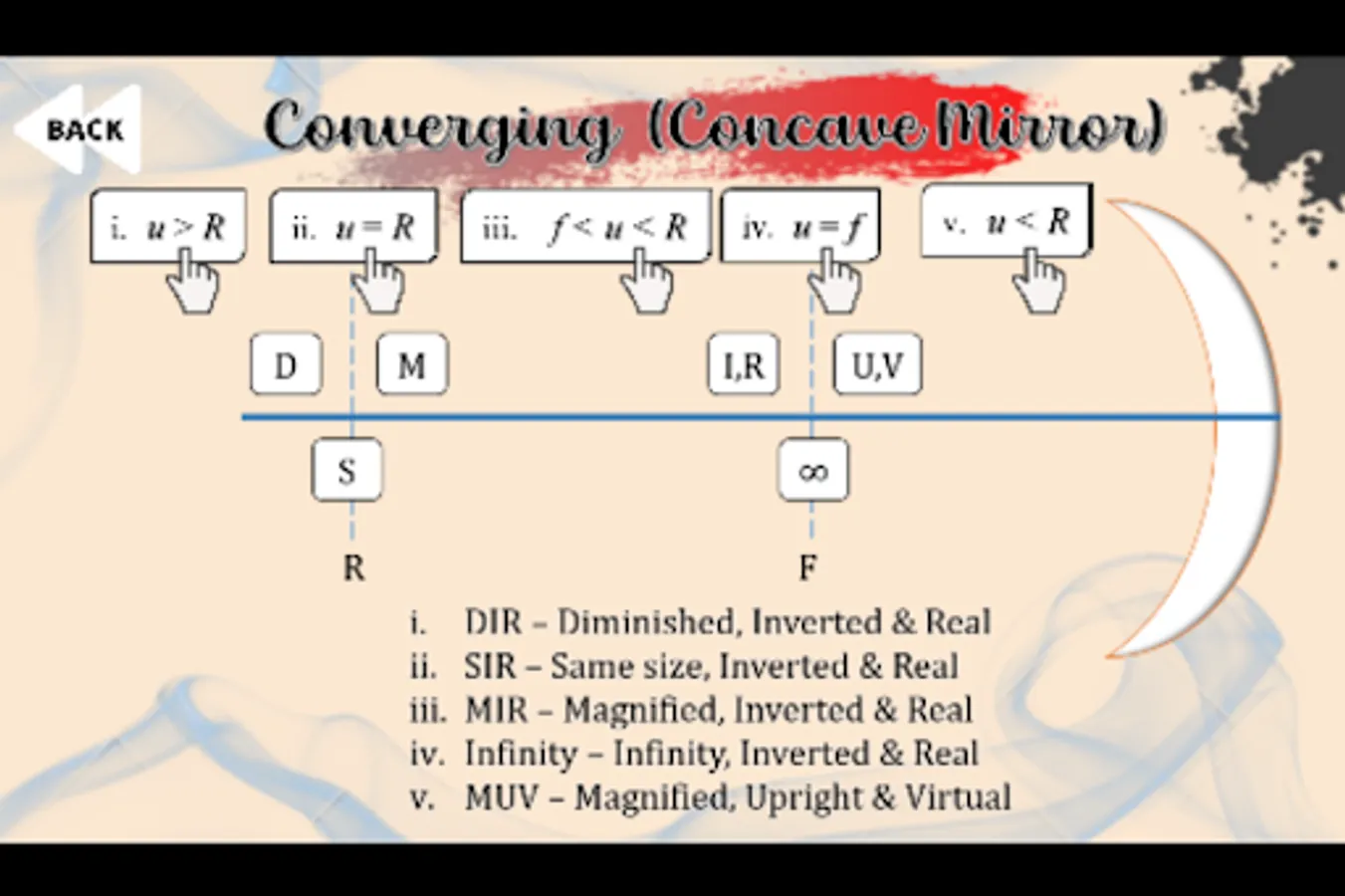 Help students to determine convex lens, concave mirror, concave lens or convex mirror easily.