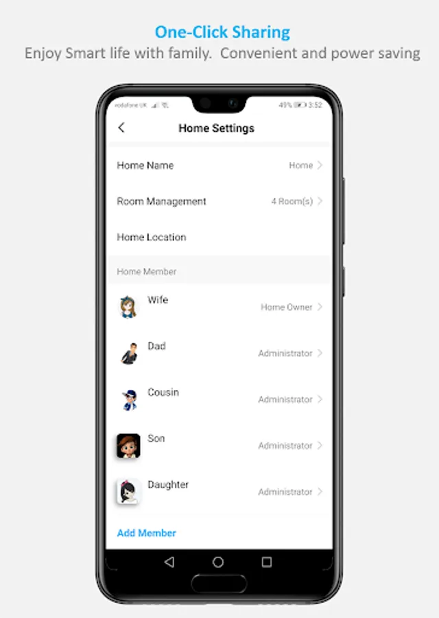 The app allow you to easily share devices among family members.