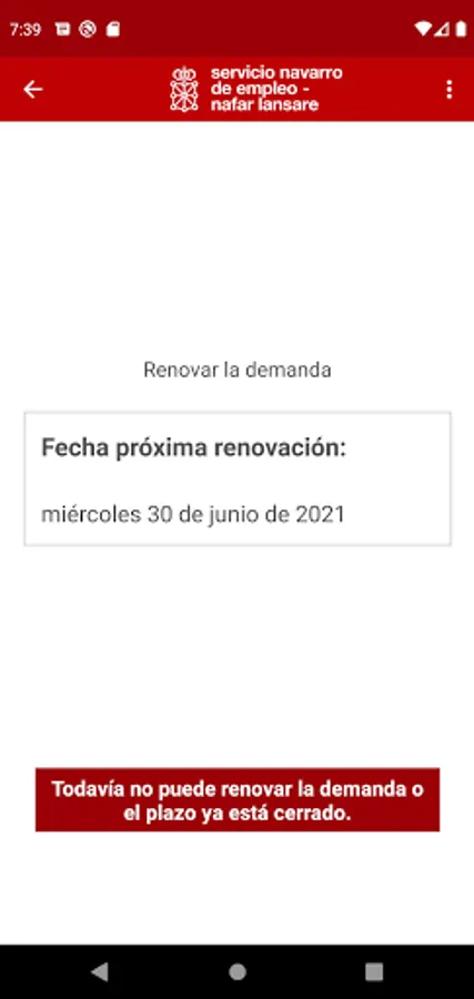 This app only allows job seekers renewals activated in Navarra and high status. cards can not be reactivated on leave or suspension or permits pending renewal work. In this case, it is necessary to go to the employment agency.