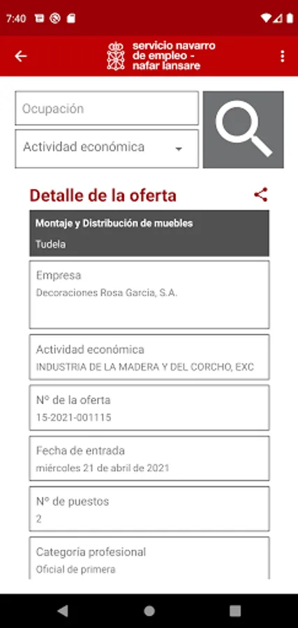 The contents and data provided in this application are officials Navarro Nafar Lansare Employment- Service and the Public State Employment Service.
