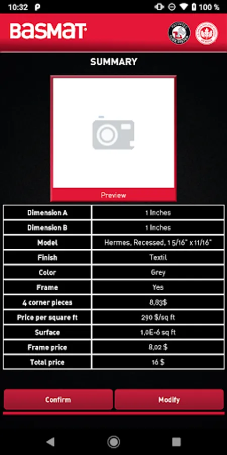 Get your estimate of Basmat on the go. Receive in your e-mail a detailed quotation and a preview of Basmat in the desired entryway.