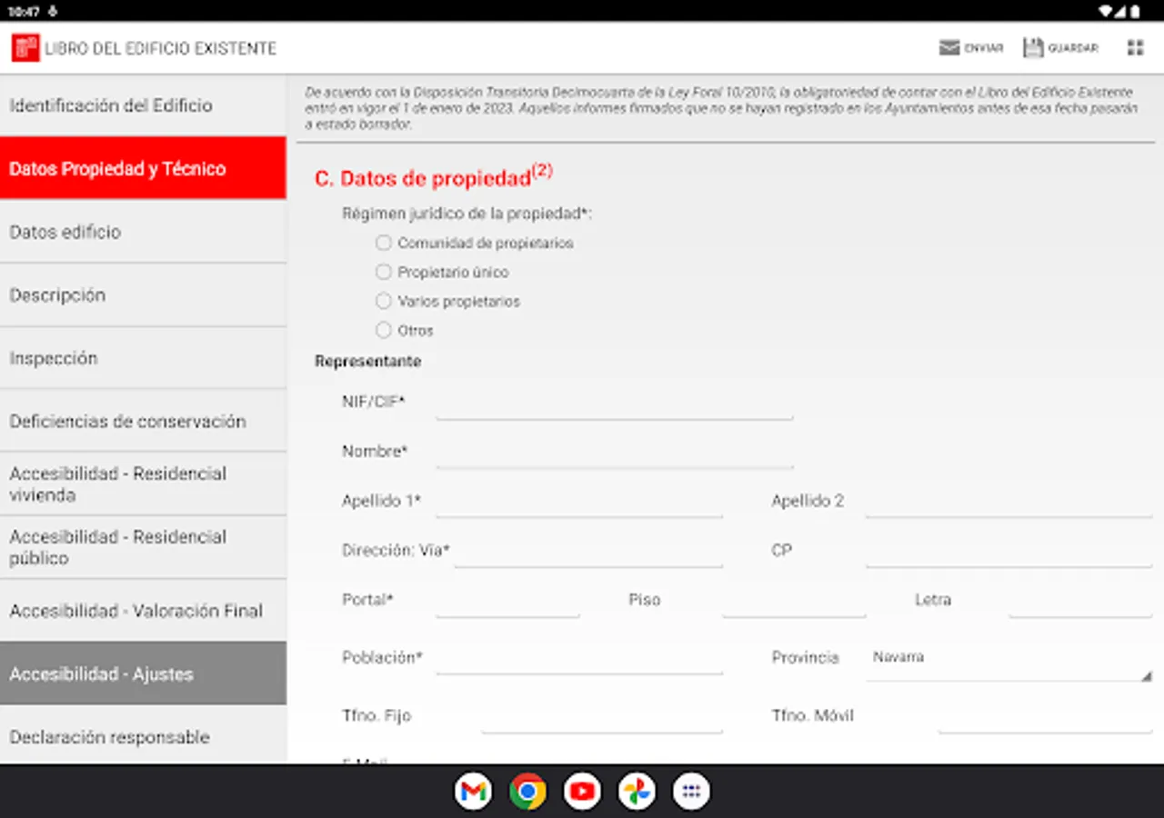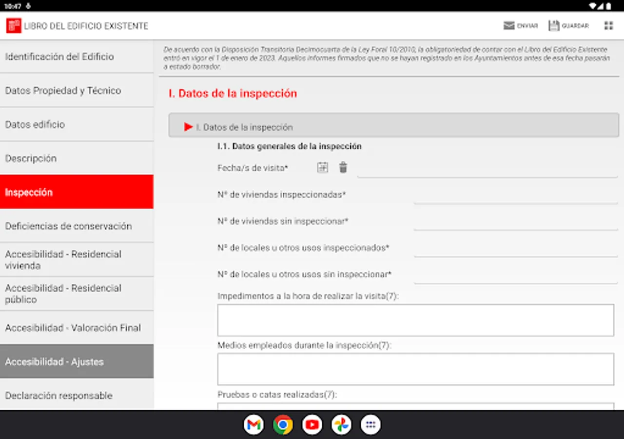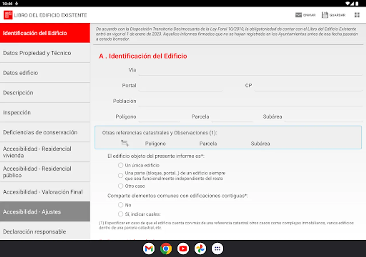 Formal implementation of the Government of Navarra for mobile devices that allows complete evaluation report building (technical paper on a building, in which information about their general condition is collected, their accessibility and energy certification).
