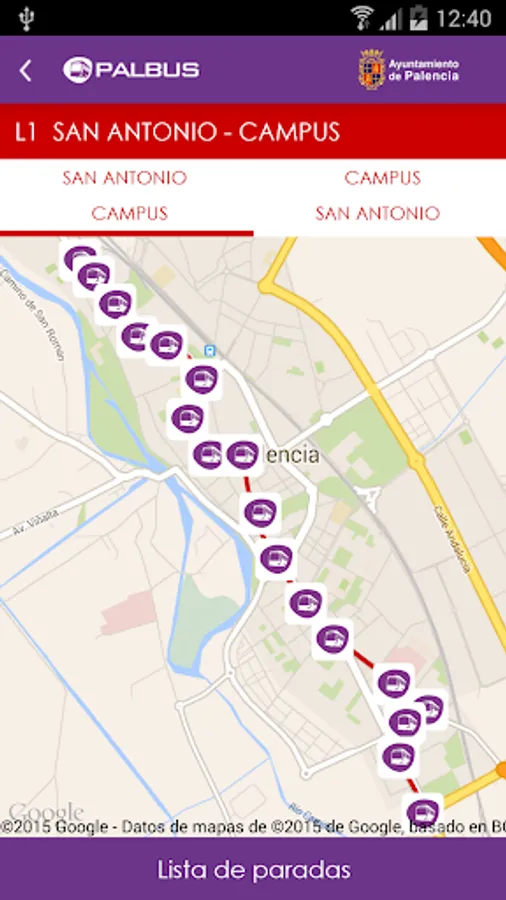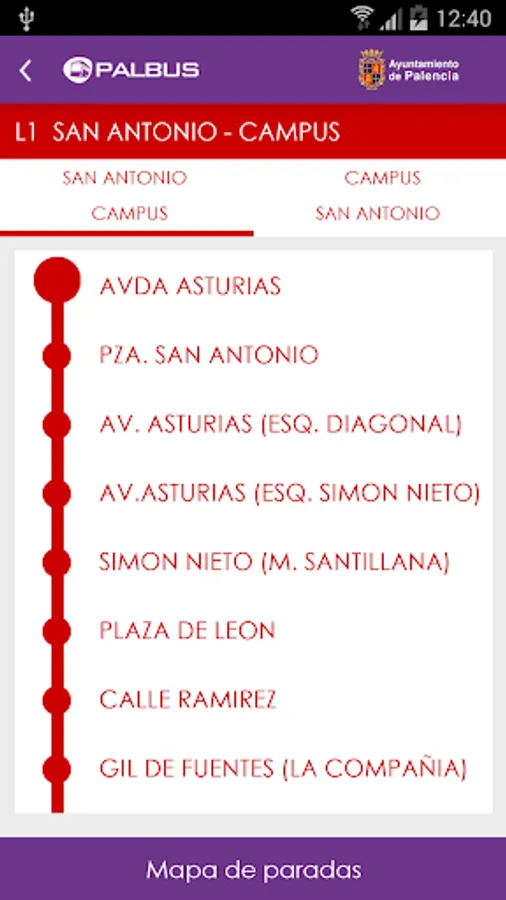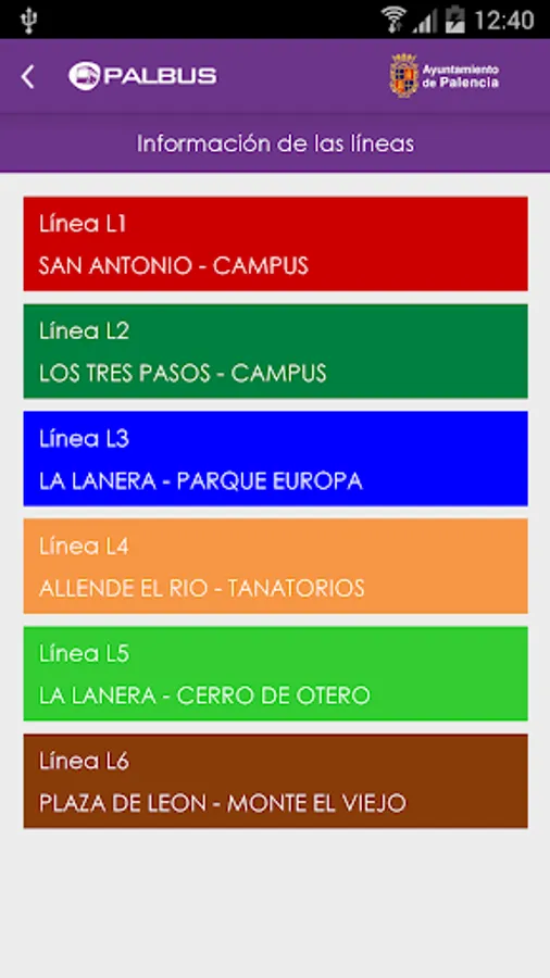 PALBUS official application for the service of Urban Transport of Palencia, all data query service: