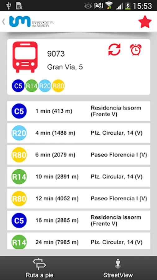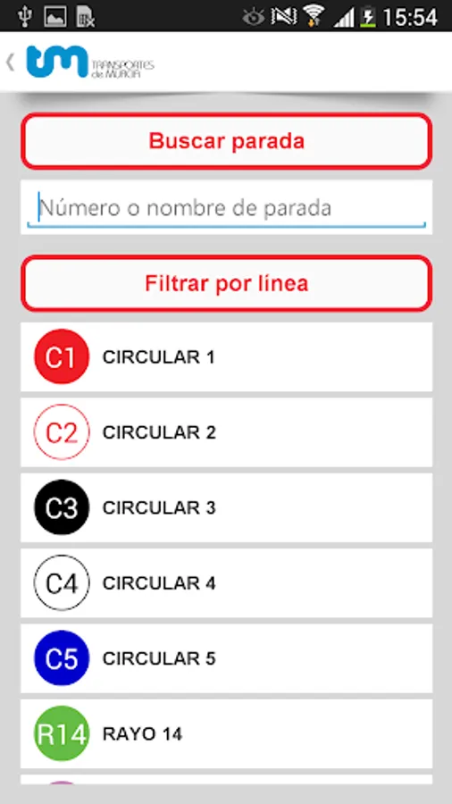Application of Transportation official Murcia, the company that runs the city bus service in the city of Murcia.