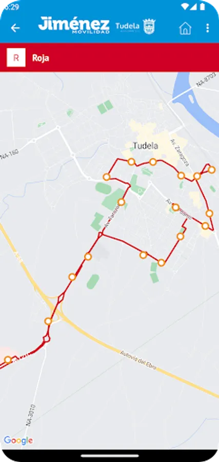 Official App of Autobuses Jiménez for the Tudela Urban Transport service that offers real-time information on the arrival estimates of the buses at the stops.