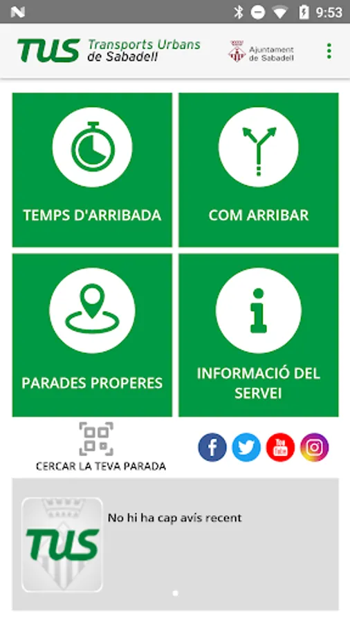 Official application of the company TUS, Urban Transport Sabadell reporting real-time bus service from Sabadell.