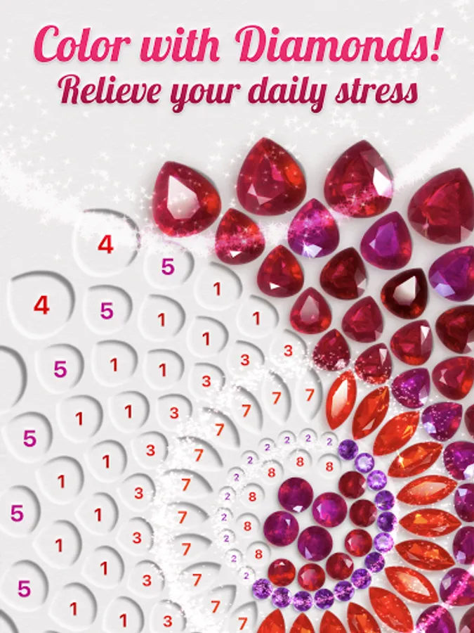 This unique Color by Number app is here to help you relax while creating art that will dazzle you and your friends! Play with beautiful gems and diamonds to sparkle up your day.