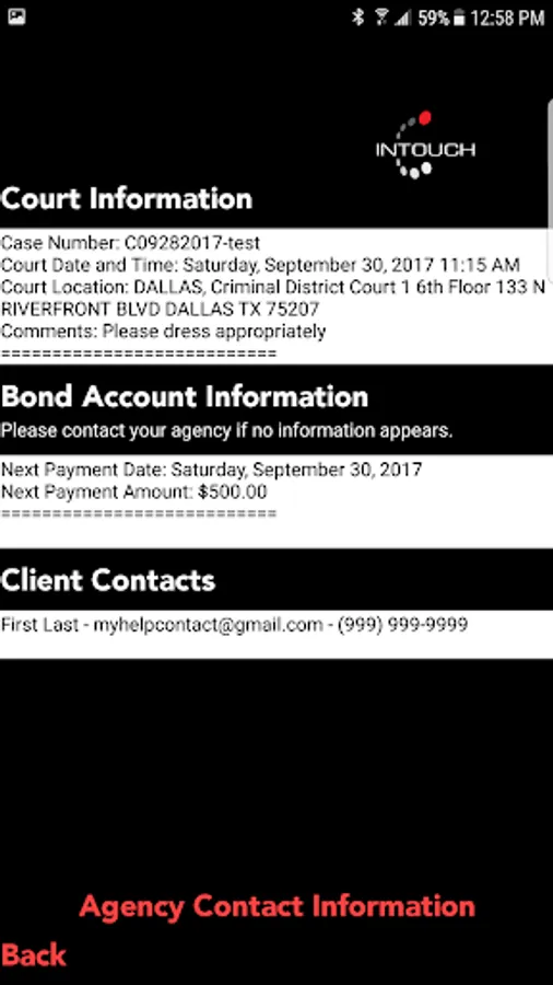 InTouch enables clients to maintain contact with their agent discretely and securely without interfering with any of their other apps. Clients are provided an easy and innovative method of checking in, requesting assistance, transmitting messages and coordinates, getting updates on their account, and reminders of upcoming events.