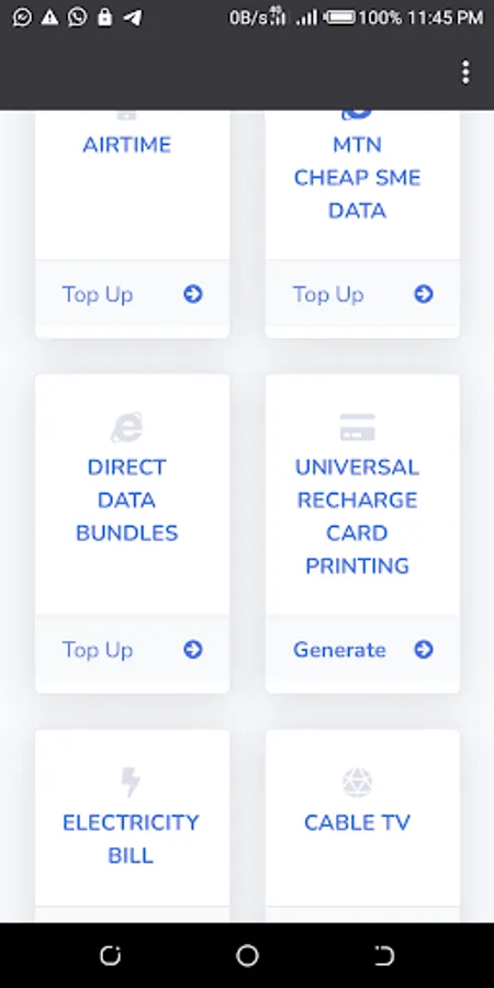 It is easy to use with a user-friendly design interface for you to pay for your daily bills such as Airtime topup (MTN, GLO, 9MOBILE, AIRTEL), Internet Data Subscriptions at Discounted Rate such as (MTN, GLO, 9MOBILE, AIRTEL), TV Cables (GOTV, DSTV, STARTIMES), Electricity, Educational Pin such as (WAEC PINS, NECO PINS etc), Generation Of Airtime Pins for Recharge Card Printing or Sale at discounted rate, Cheap MTN SME data Plans with no stress.