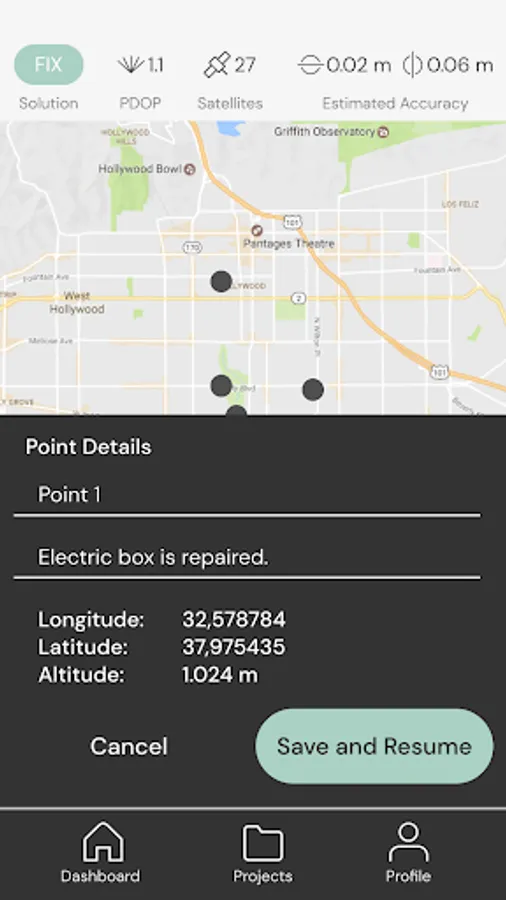 Geodo Field is an app for collecting data for Geographic Information Systems. With this application you can collect, edit and share points with highest accuracy available. You can organize projects and export as HTML, CSV, MIF, SHP, GEOJSON and KML. We only support WGS 84 EPSG:4326 for now but in the next update you will be able to create and select from many more datums. Also you can enter antenna height for accurate results.