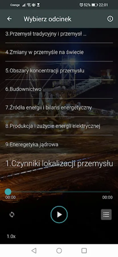 In this application you will find a complete set of GeoEdukacja podcasts in the field of Industry, which is part of the geography material from the extended level for the second grade of high school.
