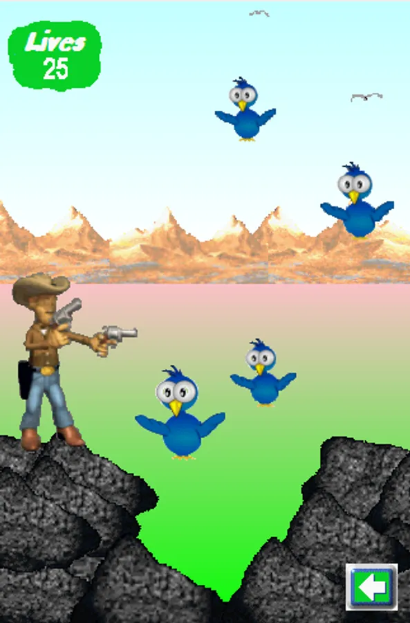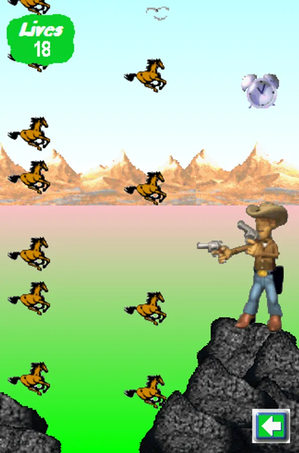 Cowboy Capers Shootout is a game where you shoot everything in sight. Get your name on the high score table, Yipeee. There are 45 levels to clear, you have 100 lives to complete the game.
