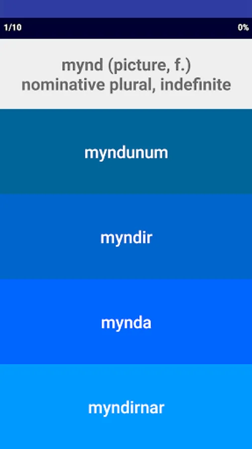 Not only that, but with a multichoice and gapfill game, it's a comprehensive drill machine to test yourself systematically on your ability to decline nouns in Icelandic. You can choose to focus on a particular case - nominative, accusative, dative or genitive - or really challenge yourself by mixing up the whole set.