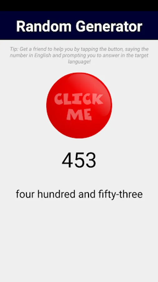 - Random Generator: enlist your friends' help by asking them to tap a number, and asking you to read it out