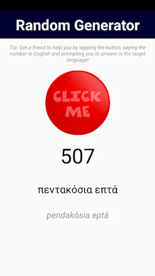 - Random Generator: enlist your friends' help by asking them to tap a number, and asking you to read it out