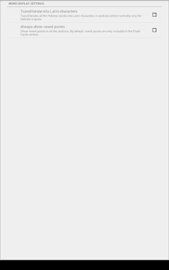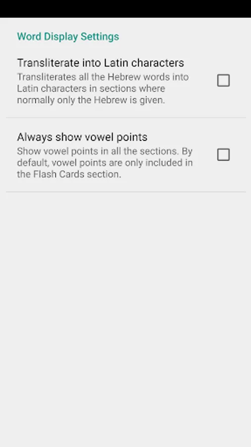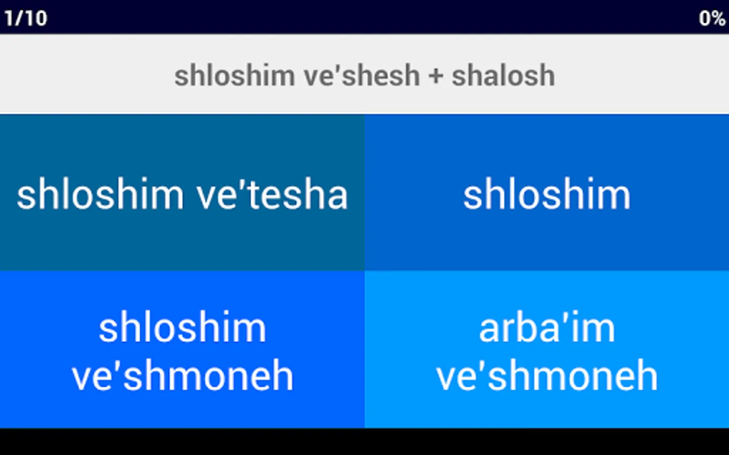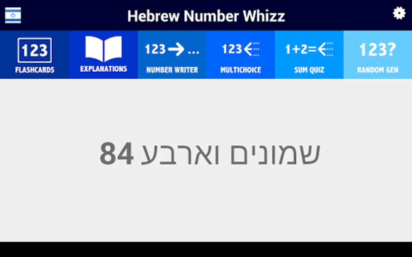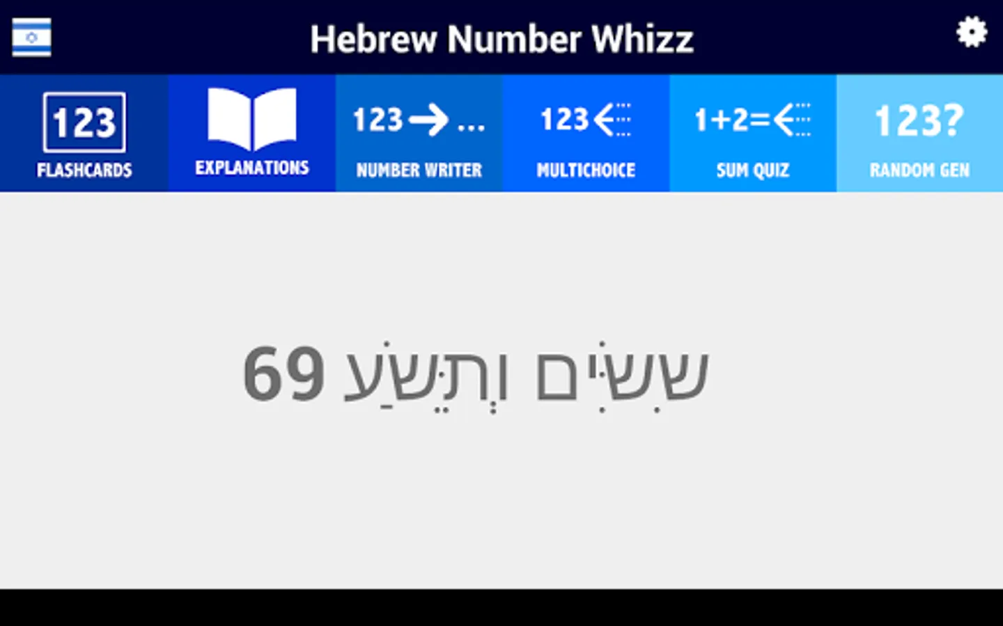 Not only that, but Hebrew Number Whizz supports learners at any level through a set of beginner-friendly settings; you can choose to include vowel points in the Hebrew words, or even put the app into transliterated mode, presenting the numbers through Latin characters.