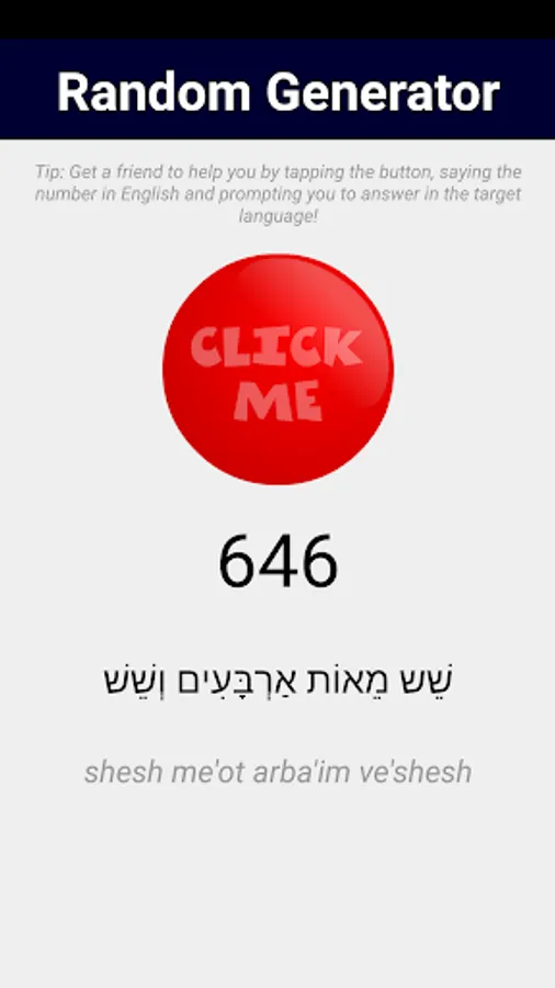 - Random Generator: enlist your friends' help by asking them to tap a number, and asking you to read it out (transliteration provided!)