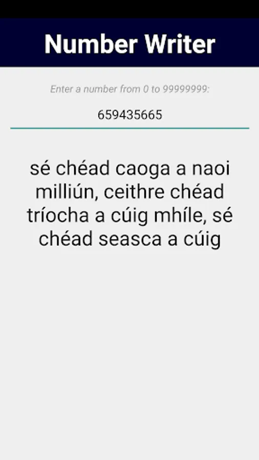 - Number Writer: type in any number up to 999,999,999 and Irish Number Whizz will write it in words